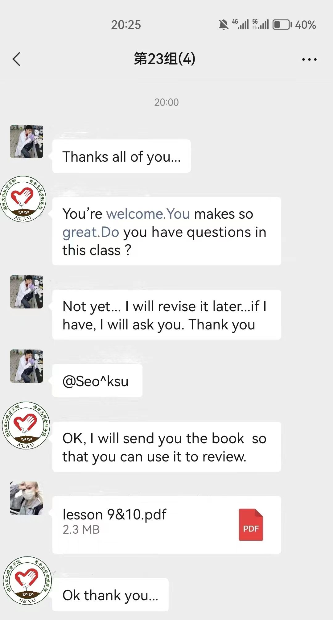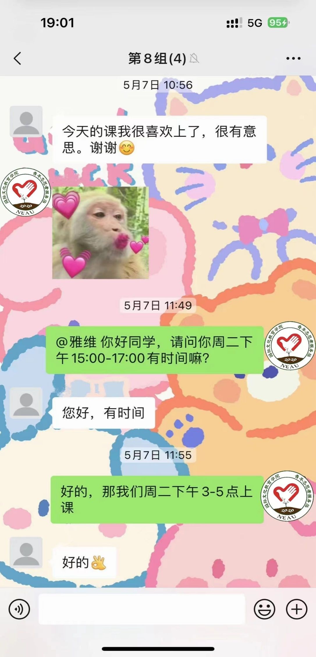 (志愿者询问留学生需要讲授的内容及授课时间)